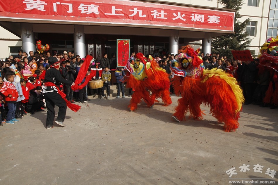 農(nóng)歷正月初九一大早,黃門鎮(zhèn)各村秧歌隊(duì)、舞獅隊(duì)就開始裝扮起來,他們踩著喜慶的鼓點(diǎn),穿著節(jié)日的盛裝,伴著劈啪作響的鞭炮聲,從四面八方涌向活動(dòng)現(xiàn)場(chǎng)。在活動(dòng)現(xiàn)場(chǎng),各村選送的舞獅、彩車、舞蹈、秧歌等充滿鄉(xiāng)土氣息的社火表演豐富多彩,讓人目不暇接,將傳統(tǒng)節(jié)日的喜氣傳遞給全鎮(zhèn)村民。