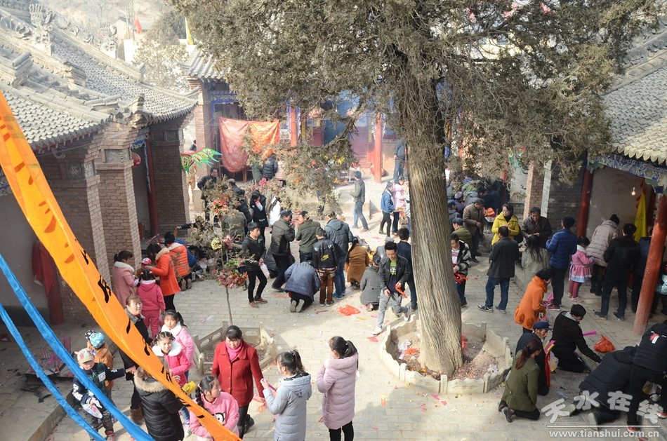 據(jù)了解,每逢農(nóng)歷正月初九,清水縣黃門鎮(zhèn)九臺(tái)山青龍寺和其他道觀一樣也都要舉行隆重的宗教儀式,誦經(jīng)叩拜,向玉皇祝壽、為黎民祈福,九臺(tái)山周圍13個(gè)莊乃至周邊數(shù)萬男女老幼上山進(jìn)香,民間群眾還裝扮社火進(jìn)行表演,恭祝玉皇圣壽。時(shí)值春意方興,寺觀內(nèi)人流潮涌,殿堂燈火通明,旗幡高掛,香煙氤氳、炮聲不斷,十分熱鬧。