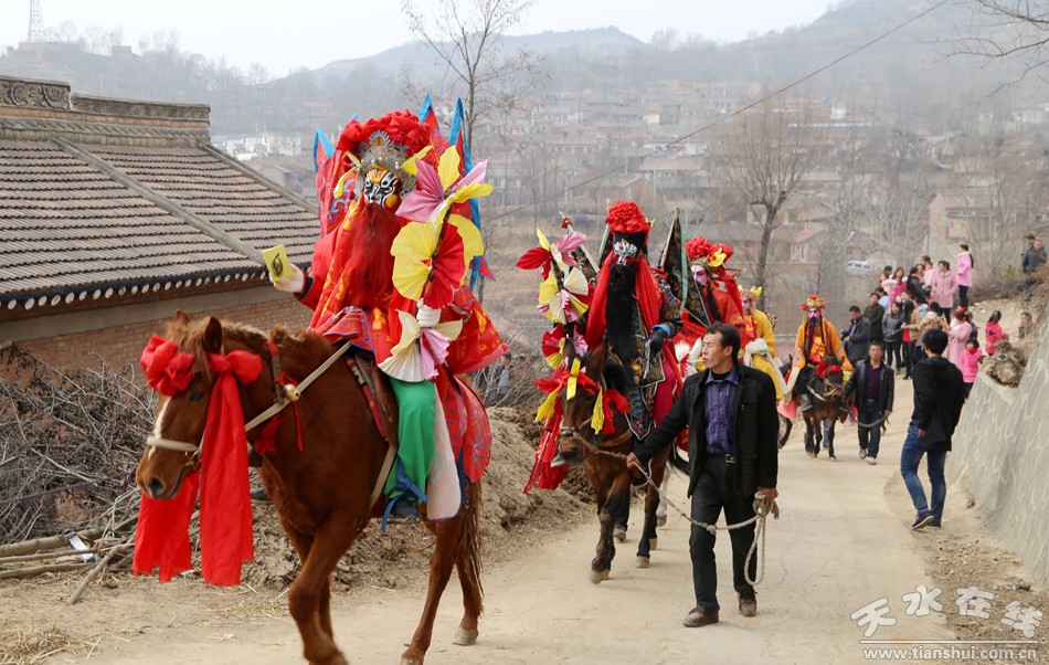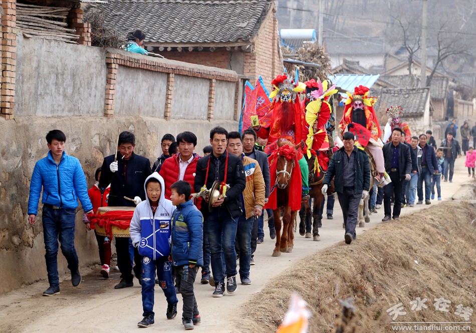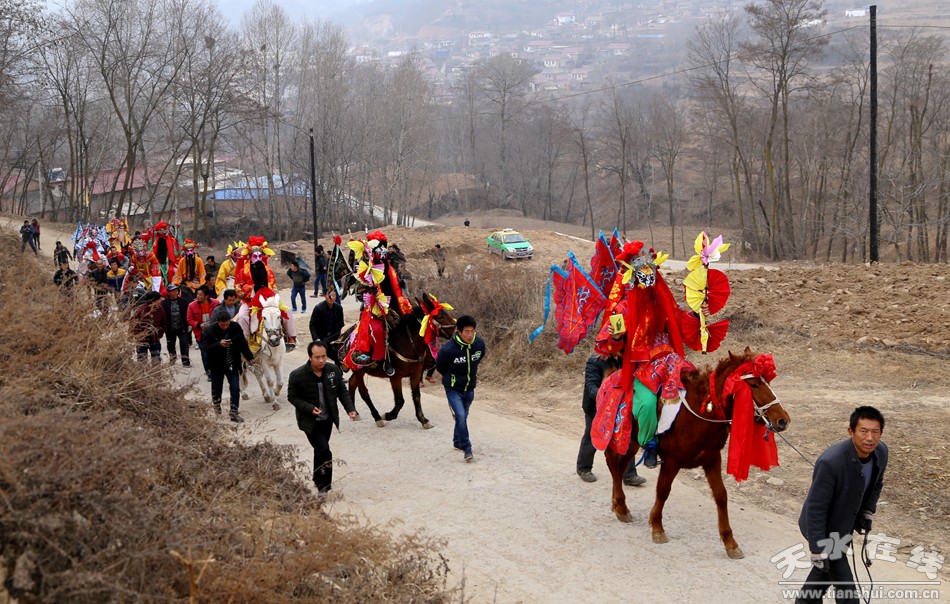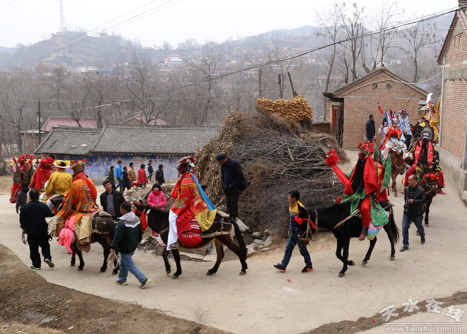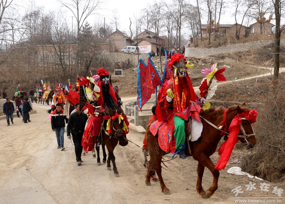2月5日(農(nóng)歷正月初九,俗稱上九),傳承已久的民間耍社火活動讓清水縣隴東鄉(xiāng)趙峽村、朱灣村、田灣村、陽灣村、白山村等村莊熱鬧非凡,穿梭在街頭巷尾的社火在祈愿國泰民安、百姓安居樂業(yè)的同時,也給新春的山村帶來了無限的歡樂。
