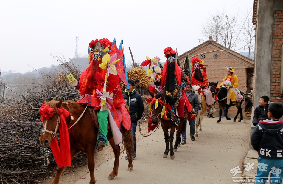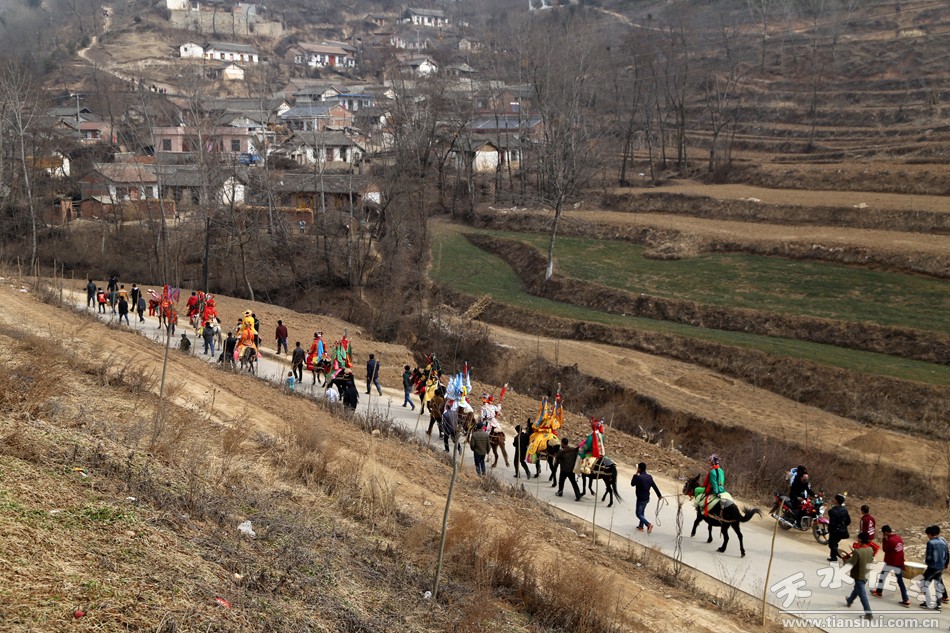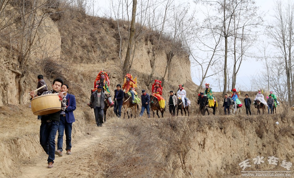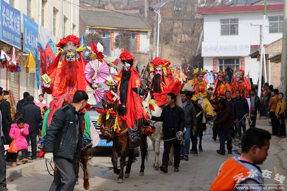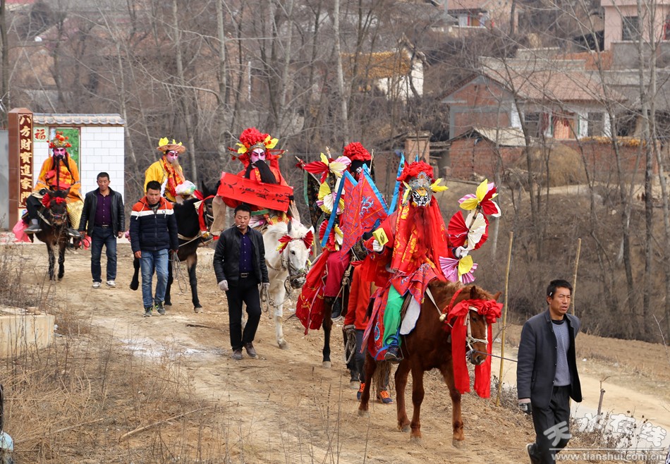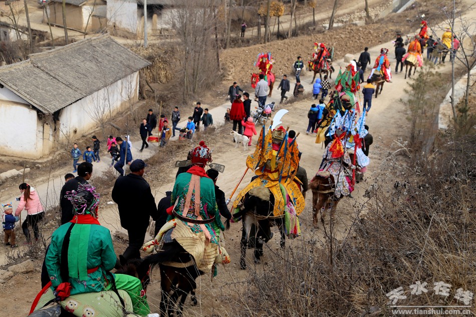 2月5日(農(nóng)歷正月初九,俗稱上九),傳承已久的民間耍社火活動讓清水縣隴東鄉(xiāng)趙峽村、朱灣村、田灣村、陽灣村、白山村等村莊熱鬧非凡,穿梭在街頭巷尾的社火在祈愿國泰民安、百姓安居樂業(yè)的同時,也給新春的山村帶來了無限的歡樂。