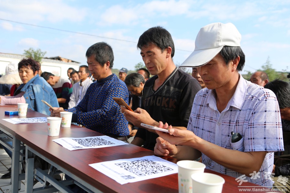 隨后,天水在線技術(shù)人員從注冊(cè)微信、綁定銀行卡、添加好友(客戶)、接收定單、填單、加入群聊,和客戶洽談,為客戶隨時(shí)拍攝發(fā)送采摘、裝箱、填單圖片和視頻的方法及網(wǎng)絡(luò)安全注意事項(xiàng)等一一進(jìn)行了講解。通過(guò)簡(jiǎn)單培訓(xùn),大部分果農(nóng)學(xué)會(huì)了使用微信接單的方法,并加入了現(xiàn)場(chǎng)組建的曹溝村電商群。為了提高大家的學(xué)習(xí)興趣,天水在線以及曹溝村電商負(fù)責(zé)人還在群內(nèi)分多次發(fā)紅包,讓大家在娛樂(lè)的同時(shí),掌握了實(shí)際操作技能。