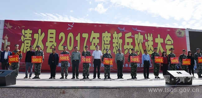 9月12日下午,清水縣舉行2017年度新兵入伍歡送大會(huì)?h政府副縣長程伯義,縣人武部部長張玉賢、政委姚永彥出席歡送大會(huì),征兵成員單位負(fù)責(zé)人,各鄉(xiāng)鎮(zhèn)武裝部長、新兵親屬一同參加了歡送大會(huì)。
