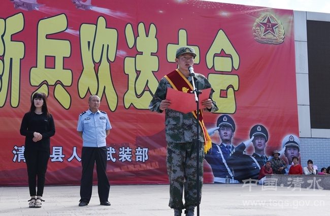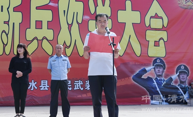 程伯義代表縣委、縣政府和全縣人民,向入伍新兵表示熱烈的祝賀,向積極送子參軍的新兵家長表示崇高的敬意。希望新入伍的同志牢記使命,要有不怕困難、不畏艱苦的思想準(zhǔn)備;要有服從命令,聽從指揮,嚴(yán)格要求的強(qiáng)烈意識(shí);在部隊(duì)要發(fā)揚(yáng)我縣“淳樸誠信、尚德務(wù)實(shí)、創(chuàng)新超越”的清水精神,努力拼搏,爭當(dāng)訓(xùn)練標(biāo)兵;要盡快適應(yīng)部隊(duì)生活,迅速投入到軍營生活之中,刻苦訓(xùn)練,努力學(xué)習(xí),增長才干,施展才華,使自己成為軍隊(duì)現(xiàn)代化建設(shè)的優(yōu)秀人才,成為讓親人驕傲、家鄉(xiāng)自豪的合格軍人。