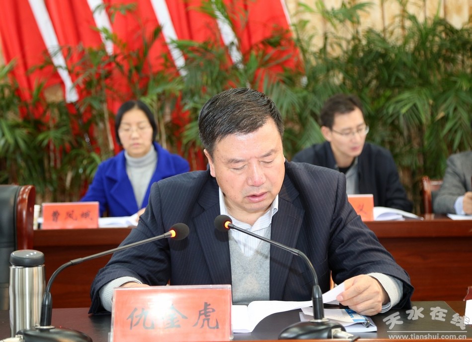 (縣委副書記仇金虎宣讀清水縣2017年度脫貧退出縣級驗收人員分組名單)