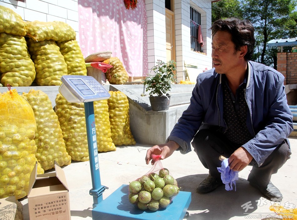 2017這一年,對(duì)于田新華來(lái)說(shuō)是值得紀(jì)念的年份,這一年,他迎來(lái)了自家核桃的大豐收,同時(shí)也讓自家的核桃搭上了電商快車(chē)遠(yuǎn)銷全國(guó)各地。田新華每天最忙的就是搗騰手機(jī)。所謂微信直銷,就是村民將微信二維碼發(fā)布在天水在線網(wǎng)站平臺(tái),客戶掃碼添加銷售核桃的村民,在微信上商談購(gòu)買(mǎi),達(dá)成一致后發(fā)微信紅包付款,村民發(fā)貨完成交易。