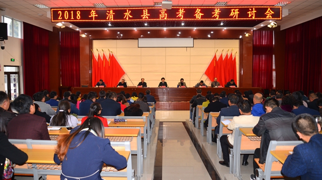 3月30日,清水縣召開2018年高考備考研討會,就2018年高考各項工作進(jìn)行了分析研判。縣政府副縣長李寶玲出席會議,縣教體局領(lǐng)導(dǎo)班子成員,督導(dǎo)室、教研室、縣一中、六中校長、書記及高三年級全體教師參加了會議。