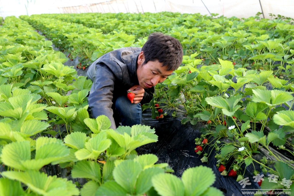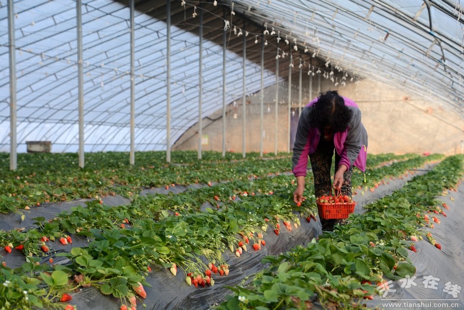心狀的草莓果,閃著柔潤的光,殷紅殷紅的果肉,散發(fā)著誘人的馨香,看一眼垂涎三尺,吃一口口舌生津。日前,筆者探訪清水縣農(nóng)業(yè)科技示范園區(qū),大棚草莓熟了,路邊草莓采摘的牌子隨處可見,不少市民帶著家人來到現(xiàn)場(chǎng)采摘。