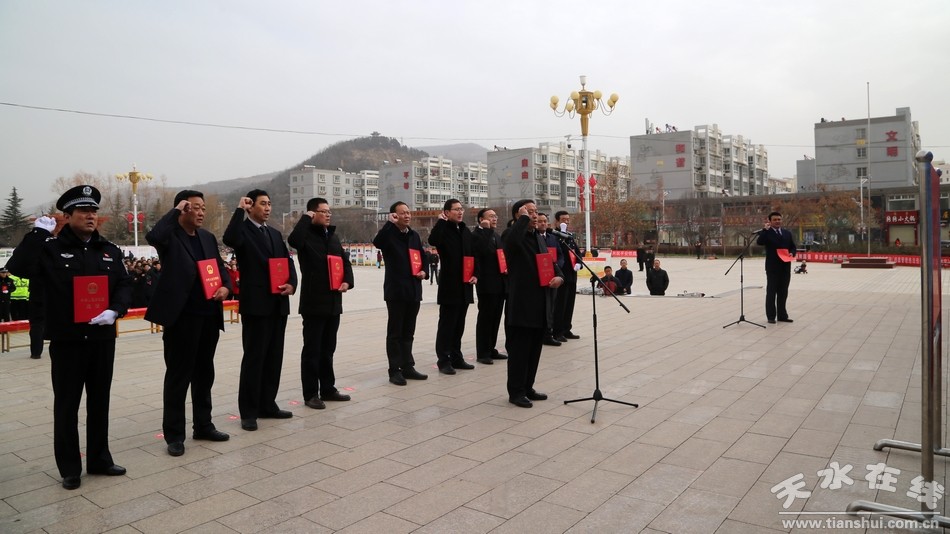 12月4日是第五個(gè)國(guó)家憲法日,清水縣2018年“憲法宣傳周”啟動(dòng)儀式在軒轅廣場(chǎng)舉行。啟動(dòng)儀式上,清水縣組織黨群組織及國(guó)家機(jī)關(guān)工作人員500多人舉行了《憲法》宣誓,深入貫徹落實(shí)習(xí)近平總書記全面依法治國(guó)新理念新思想新戰(zhàn)略,進(jìn)一步尊崇憲法、學(xué)習(xí)憲法、遵守憲法、維護(hù)憲法、運(yùn)用憲法。