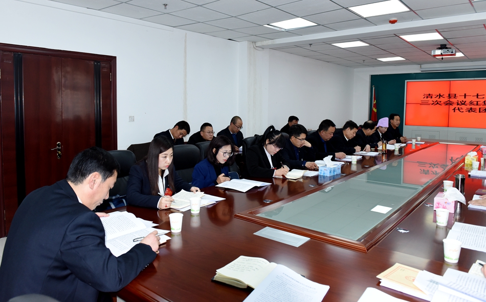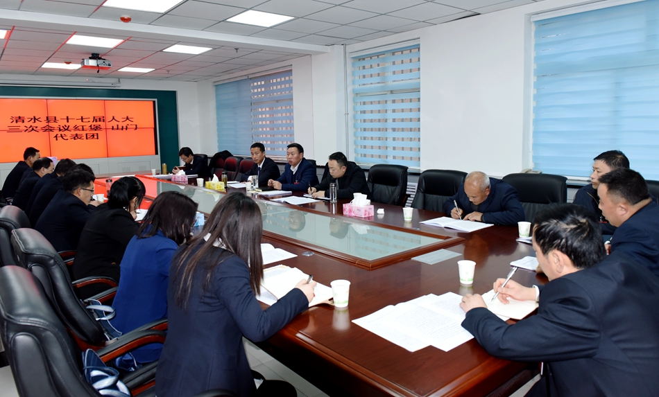 1月8日下午,清水縣十七屆人大三次會議紅堡、山門代表團各位人大代表認真審議《政府工作報告》,縣委副書記、縣長馬越垠,縣委副書記李致明,縣人大常委會副主任畢德祥參加審議。