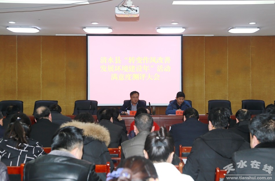 1月10日晚,清水縣委常委、組織部長周濟(jì)主持召開全縣“轉(zhuǎn)變作風(fēng)改善發(fā)展環(huán)境建設(shè)年”活動(dòng)滿意度測評大會(huì),主要對18鄉(xiāng)鎮(zhèn)和104個(gè)部門、單位作風(fēng)建設(shè)年活動(dòng)開展情況進(jìn)行第三方滿意度測評。