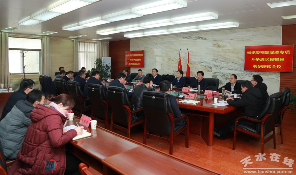 2月20日,省紀委常委王國建一行深入清水縣督導(dǎo)調(diào)研掃黑除惡專項斗爭相關(guān)工作。市委常委、紀委書記、監(jiān)委主任王國先,市人大常委會副主任、清水縣委書記劉天波及馬利民、張煒、秦永斌、李寶玲等縣領(lǐng)導(dǎo)先后參加了督導(dǎo)調(diào)研活動。
