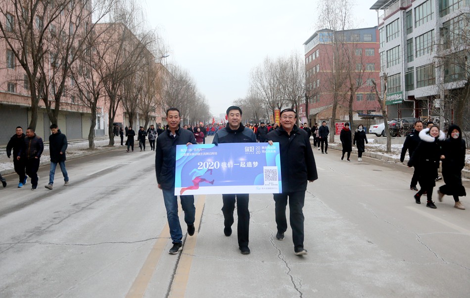 (劉天波、馬越垠、丁旺喜為2020年全民健身·助力脫貧攻堅“元旦”徒步走活動鳴槍發(fā)令)