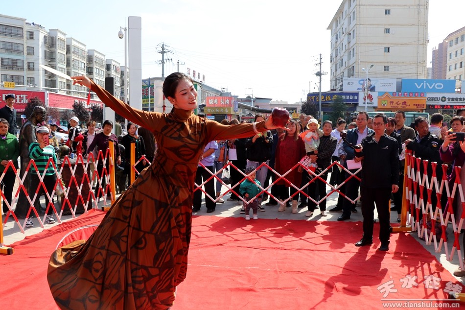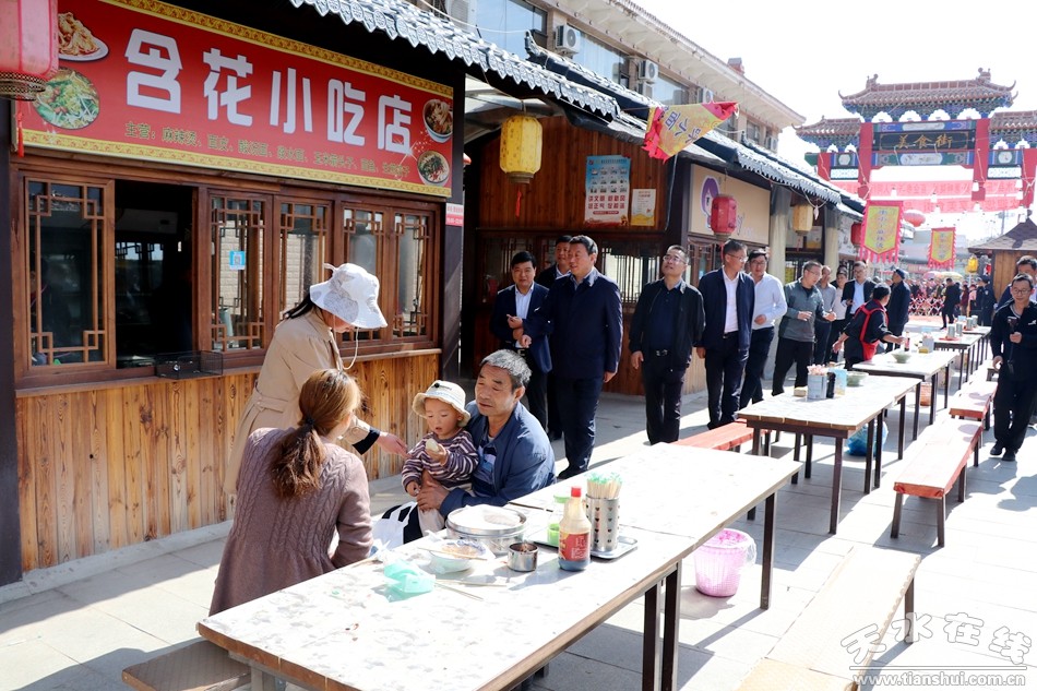 啟動(dòng)儀式結(jié)束后,馬越垠等領(lǐng)導(dǎo)深入步行街、尚品美食街、各鄉(xiāng)鎮(zhèn)農(nóng)特產(chǎn)品展銷賣場(chǎng),實(shí)地察看了各項(xiàng)活動(dòng)開(kāi)展情況,觀看了天水在線“不倒翁”表演。