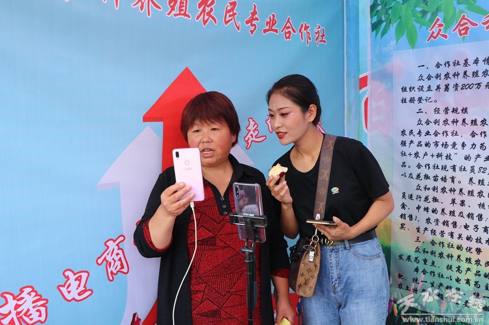 (馬越垠等領(lǐng)導(dǎo)觀看天水在線主播萌萌“大地灣女神”不倒翁表演)