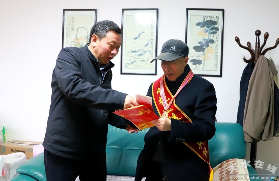 波瀾壯闊的抗美援朝戰(zhàn)爭中,英雄的中國人民志愿軍鍛造了偉大抗美援朝精神。不怕犧牲、英勇戰(zhàn)斗的光榮事跡和愛國情懷,永遠(yuǎn)值得后人學(xué)習(xí)和敬仰,每一個(gè)中國人都應(yīng)深刻銘記抗美援朝戰(zhàn)爭的艱辛歷程和偉大勝利,弘揚(yáng)偉大抗美援朝精神。10月27日上午,清水縣委副書記、縣長馬越垠專程走訪慰問部分抗美援朝志愿軍老戰(zhàn)士,將“中國人民志愿軍抗美援朝出國作戰(zhàn)70周年”紀(jì)念章送到他們手中,并向全縣所有健在的志愿軍老戰(zhàn)士、老同志致以崇高敬意和親切問候。
