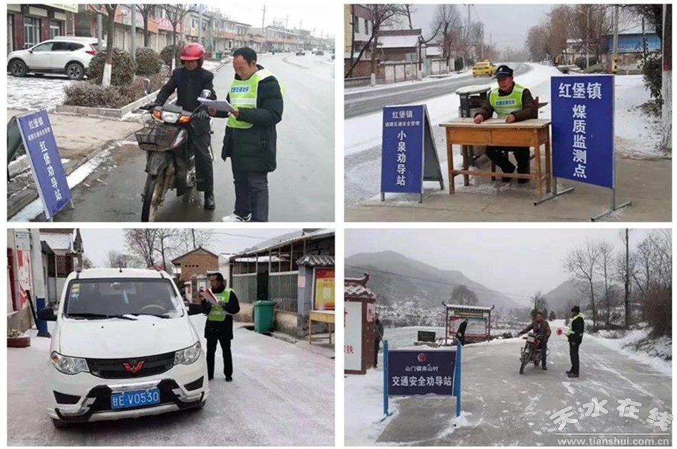 針對(duì)交通安全隱患系數(shù)增大,易發(fā)交通堵塞、各類交通事故的特點(diǎn),交警部門迅速啟動(dòng)冰雪惡劣天氣道路交通安全管理應(yīng)急預(yù)案,加大警力疏導(dǎo)暢通主要干線交通,確保重點(diǎn)路段“有人管”,并增加農(nóng)村道路巡邏車輛,聯(lián)合“兩站一室”人員開展惡劣天氣檢查勸導(dǎo)工作。