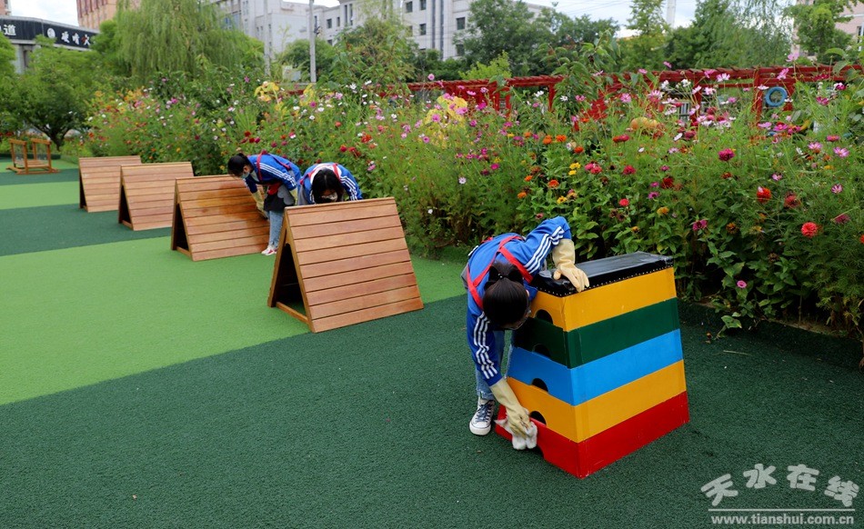 為保障開學平穩(wěn)順利,清水縣第四幼兒園的全體教師手持消毒工具以“地毯式”作業(yè)對園內所有教室角落、功能室、餐廳等重點區(qū)域進行表面清洗和防疫消殺,確保園內環(huán)境安全有序,教學任務零風險。