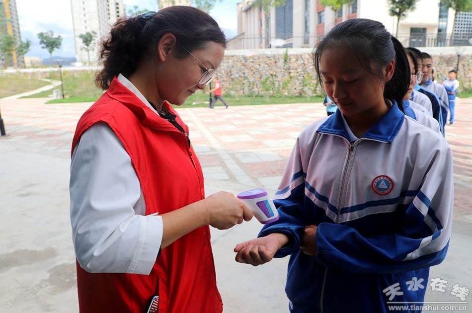 第八中學副校長王會軍介紹說,“清水八中按照上級主管部門的統一安排,入學報道工作正在有序開展,就疫情防疫這一塊,我們從學生的進校測溫查驗,再到師生共同用餐,都是責任到人,有序開展。還有疫苗接種工作這一項任務,我們學校12至17周歲人口注射第一針全部完成。目前按上級的安排,我們正在有序推進第二針的注射工作!