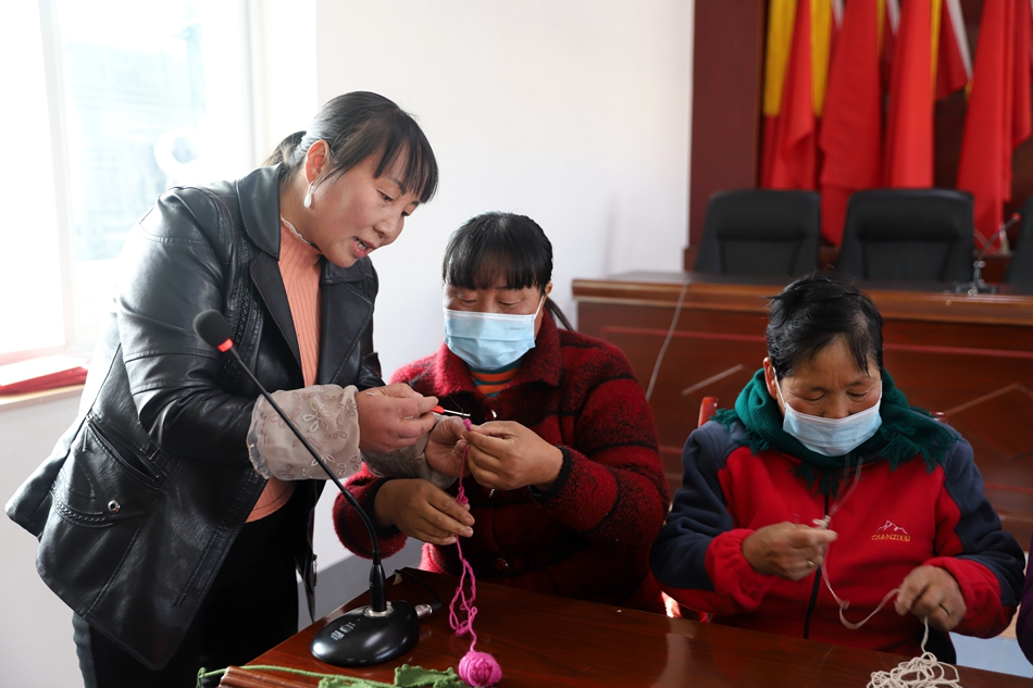 輕挑慢捻針線穿梭,巧手織物技藝精湛。這樣的畫(huà)面常常出現(xiàn)在鄉(xiāng)村婦女手中,她們用一雙巧手為家中添置枕巾、鞋墊、拖鞋等生活用品。為將編織這項(xiàng)技能變?yōu)閹?dòng)?jì)D女致富創(chuàng)業(yè)的實(shí)用技術(shù),土門(mén)鎮(zhèn)積極銜接,與天水“媧鄉(xiāng)巧娘”文化發(fā)展公司達(dá)成冬奧同款“絨”耀之花訂單合作意向。近日,由土門(mén)婦聯(lián)牽頭舉辦巧手編制課堂,培訓(xùn)“絨”耀之花編織技藝。