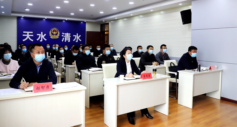 縣委副書記、縣長李菊霞,縣委常委、政法委書記王懷珍,副縣長、公安局局長趙智彥及區(qū)禁毒委成員單位負責人在清水分會場收聽收看會議。(圖/文 清水融媒記者 劉清寧 楊榕奎)