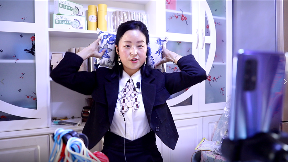 “枕頭里面裝的都是實(shí)木的艾絨,艾絨艾草具有活血化瘀的作用,這是一個(gè)頸椎的枕頭……”巾幗創(chuàng)業(yè)先鋒支彩霞正在她的直播間“村花【艾草】的小店”介紹健康枕的理療功能。點(diǎn)開(kāi)她的直播間店鋪,健康枕、實(shí)木艾灸蒲團(tuán)、熏香艾草、農(nóng)產(chǎn)品艾柱艾條艾絨等艾草系列產(chǎn)品應(yīng)有盡有。