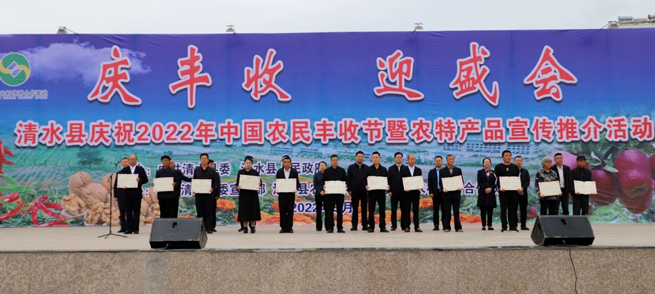 9月23日,是中國第五個農(nóng)民豐收節(jié)。當(dāng)天,清水縣舉辦了以“慶豐收、迎盛會”為主題的2022年中國農(nóng)民豐收節(jié)現(xiàn)場慶;顒,一起分享農(nóng)民群眾豐收的喜悅,充分展現(xiàn)全縣農(nóng)業(yè)農(nóng)村工作的喜人成就,弘揚傳承中華優(yōu)秀農(nóng)耕文化,以實際行動迎接黨的二十大勝利召開。