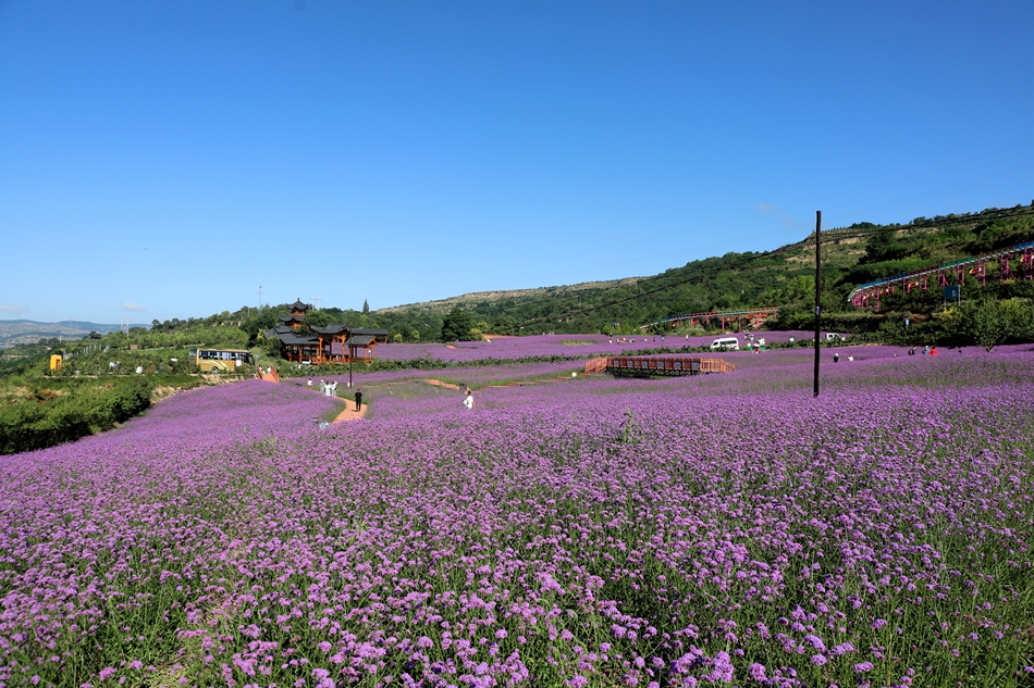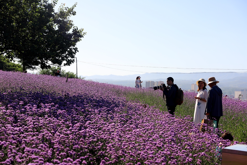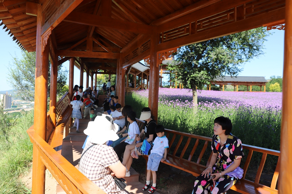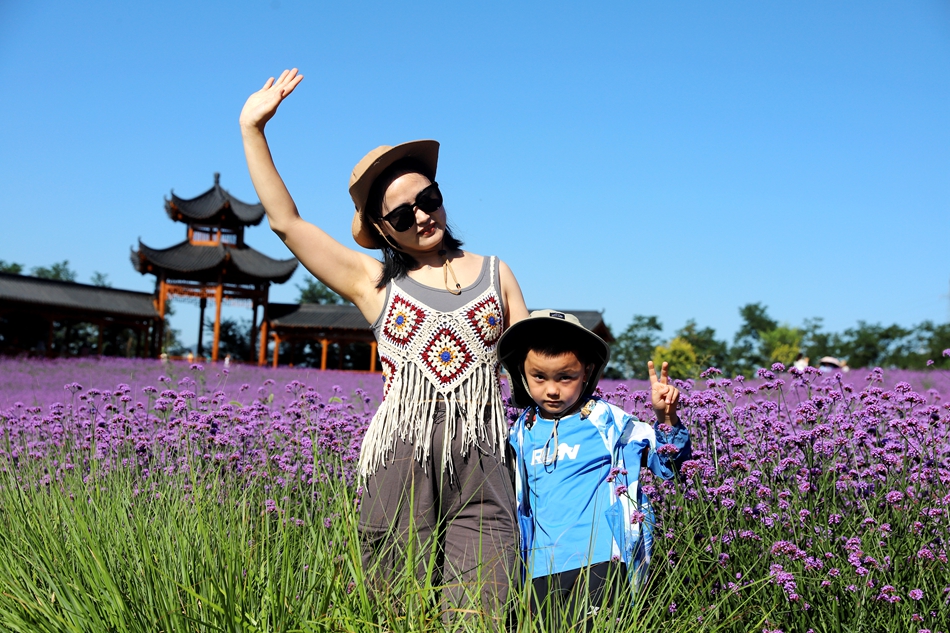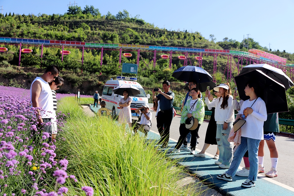 初秋,清水縣花舞北山的馬鞭草、薰衣草花開正艷,放眼望去,猶如一片紫色的海洋,如夢如幻,極盡浪漫。七彩水滑、愛心花架、復(fù)古涼亭等景觀錯落有致,吸引一批又一批的縣外游客前來觀光打卡,北山生態(tài)景區(qū)在這個暑假迎來新的旅游高峰。
