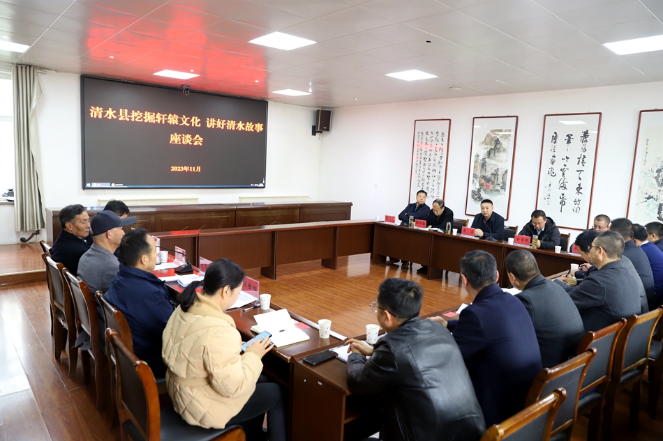 11月21日,清水縣“挖掘軒轅文化 講好清水故事”座談會(huì)召開,縣委常委、紀(jì)委書記、監(jiān)委主任馬滔,副縣長(zhǎng)金學(xué)民出席座談會(huì)。