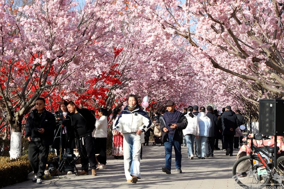 記者看到,不少市民趁著晴好天氣結(jié)伴而來,或在花樹、燈籠樹下定格笑臉,或沿著湖邊漫步賞景,孩子們追逐嬉戲,歡聲笑語縈繞湖畔。