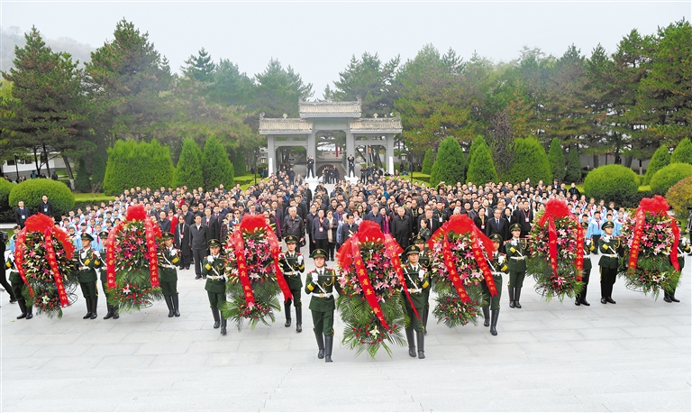 10月23日, 陜甘邊區(qū)蘇維埃政府成立85周年紀(jì)念活動在南梁舉行;顒悠陂g,與會領(lǐng)導(dǎo)和嘉賓向為創(chuàng)建陜甘邊革命根據(jù)地、為中國革命光榮捐軀的革命烈士敬獻花籃。新甘肅·甘肅日報記者 李小龍
