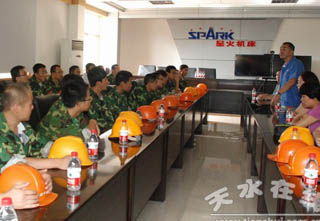 “博士服務團”一行來到星火機床公司后,先后參觀了工業(yè)園區(qū)重型裝配現(xiàn)場、公司數(shù)控裝配生產現(xiàn)場、以及公司研制生產的CNCH350航空精密數(shù)控車床,親身感受了企業(yè)繁忙有序的生產場面和現(xiàn)代化一流大廠房的宏偉氣勢。參觀過程中,李維謙董事長向“博士服務團”一行介紹了星火的遠景規(guī)劃,創(chuàng)新發(fā)展思路等方面的情況。