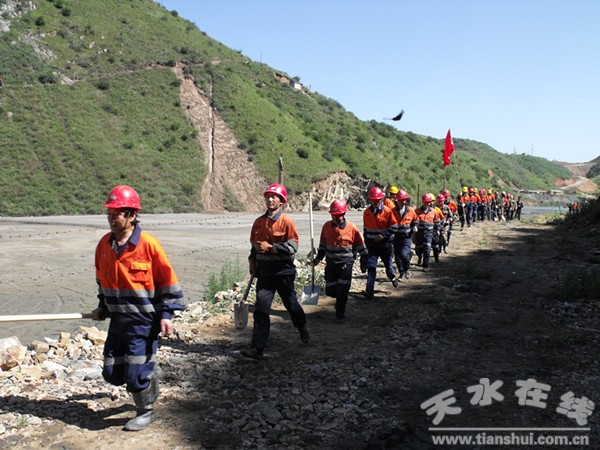 遵照天水市、張家川縣安監(jiān)部門工作要求,結(jié)合我礦夏季多雨的實(shí)際情況,張家川鑫達(dá)礦業(yè)開發(fā)有限責(zé)任公司于2013年6月28日在2#尾礦庫舉行了一場防汛、防洪、防潰壩的應(yīng)急救援實(shí)戰(zhàn)演練。