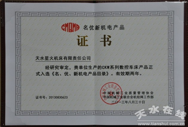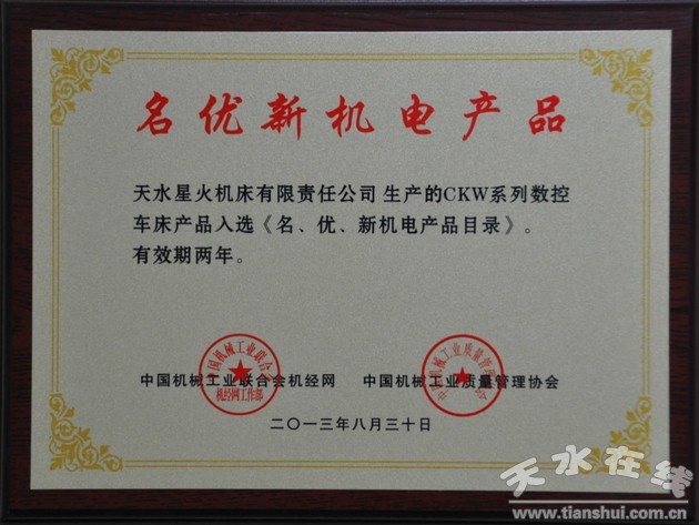 日前,天水星火機(jī)床公司CKW系列數(shù)控車床,被中國機(jī)械工業(yè)質(zhì)量管理協(xié)會(huì)和中國機(jī)械工業(yè)聯(lián)合會(huì)機(jī)經(jīng)網(wǎng),評(píng)為名優(yōu)新機(jī)電產(chǎn)品,入選《中國名、優(yōu)、新機(jī)電產(chǎn)品目錄》。