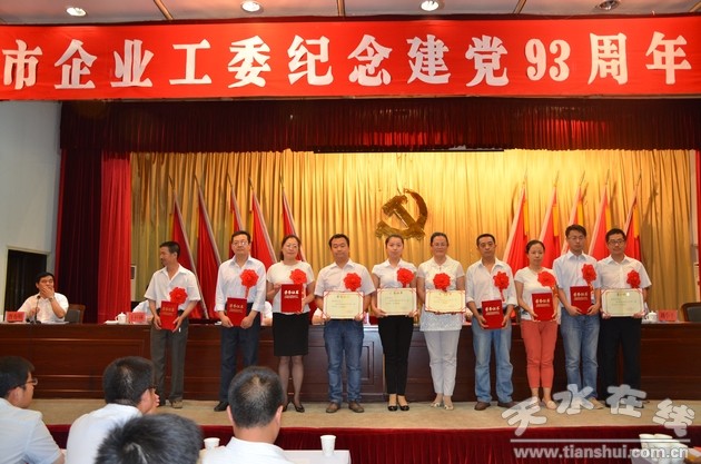 6月26日下午,天水市企業(yè)工委慶祝建黨93周年表彰大會在市迎賓館舉行。會議由市工信委副主任、企業(yè)工委書記何曉斌同志主持。