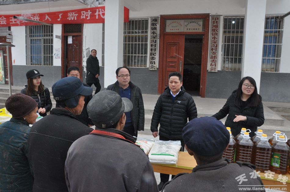 2月10日(農(nóng)歷臘月25日),當許多在外地的游子們紛紛腳步匆匆的趕回家鄉(xiāng)過年時,天水市浙江商會執(zhí)行會長、天水市青年企業(yè)家協(xié)會會長、天水卓雅服飾有限公司董事長方正偉卻在天水市工商聯(lián)副主席蔡建春及駐村干部的陪同下,冒著風雪嚴寒和路上的薄冰來到了武山縣灘歌鎮(zhèn)本深溝村,對這里的鄉(xiāng)親們進行了慰問,不僅為他們送來了大米、食用油等生活用品而且還為村里捐贈了20盞新功能太陽能路燈。