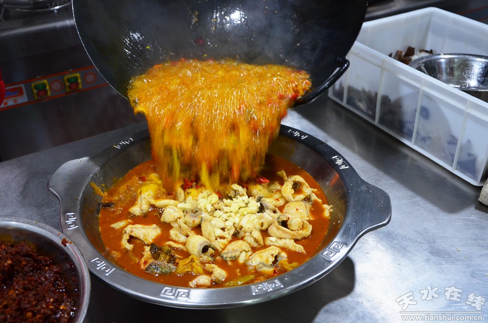 祥和里火鍋以干鍋和熗鍋魚為主,也有傳統(tǒng)的湯鍋涮菜,它采用了本地的傳統(tǒng)的制作手法,以土雞和野生菌做底湯熬制而成。既結(jié)合了四川火鍋的特色,也融合了天水人香辣口味的祥和里火鍋,烹飪時(shí)通過各種原料香氣的互相滲透、互相融合,將腥膻意味和調(diào)料的單一轉(zhuǎn)變成為復(fù)合美味。