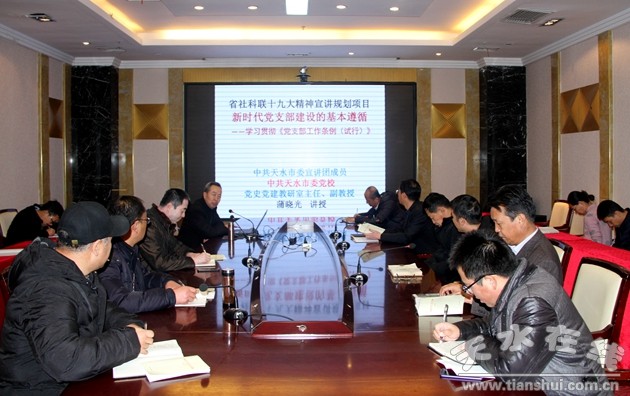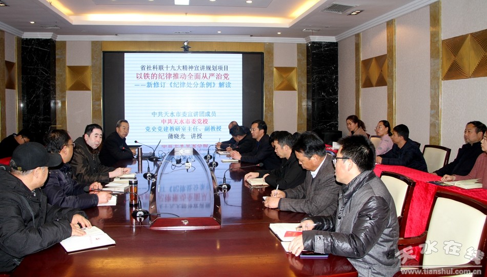 為深入學(xué)習(xí)貫徹中共中央新修訂的《中國(guó)共產(chǎn)黨紀(jì)律處分條例》和《中國(guó)共產(chǎn)黨支部工作條例》,12月14日下午,甘肅煤田地質(zhì)局綜合普查隊(duì)邀請(qǐng)?zhí)焖形h校黨史黨建教研室主任蒲曉光副教授來(lái)該隊(duì)舉辦專題輔導(dǎo)講座。講座由該隊(duì)紀(jì)委書(shū)記、工會(huì)主席蔣強(qiáng)主持,全體在家隊(duì)領(lǐng)導(dǎo)、中層干部、在職黨員和入黨積極分子聽(tīng)取了講座。