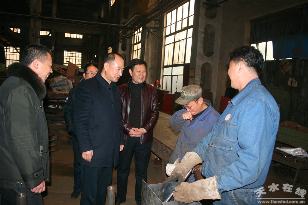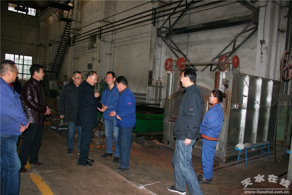 新春來臨之際,2月2日下午,天水鍛壓機(jī)床(集團(tuán))有限公司董事長(zhǎng)陳鴻率公司領(lǐng)導(dǎo)班子成員孫宏、白峰、王東明、劉軍強(qiáng)、劉文革、楊軍深入到技術(shù)中心和第一聯(lián)合分廠、第二聯(lián)合分廠、四分廠等生產(chǎn)一線看望職工,并給大家拜年。