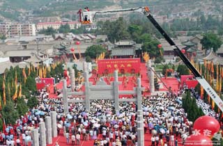 在人們的驚嘆聲中,6組巨大的火輪飛旋閃爍,春蘭秋菊競放奇葩,一組又一組焰火騰空而起,帶著秦州人民對新春的祝福飛升紫夜,把人間最美的花撒向天河。隨后,48盞大紅燈籠、無數(shù)的中空和高空禮花彈次第燃放,姹紫嫣紅,美不勝收。時而天女散花,鶯歌燕舞;時而紅燈高掛,火樹銀花……