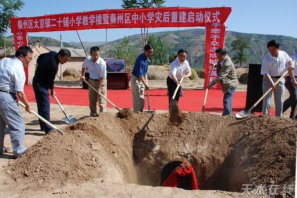 6月2日,天水市秦州區(qū)太京鎮(zhèn)二十鋪小學(xué)災(zāi)后教學(xué)樓重建奠基,標(biāo)志著秦州區(qū)中小學(xué)災(zāi)后重建工作正式啟動(dòng)。