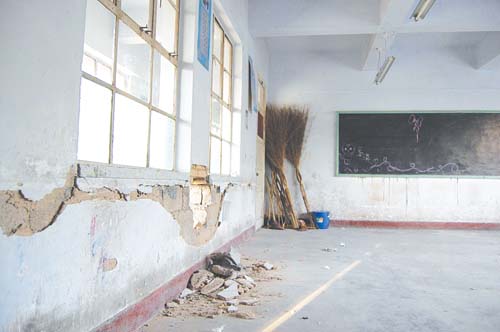 天水市四中教學(xué)樓受損嚴(yán)重,一教室墻體出現(xiàn)大洞。