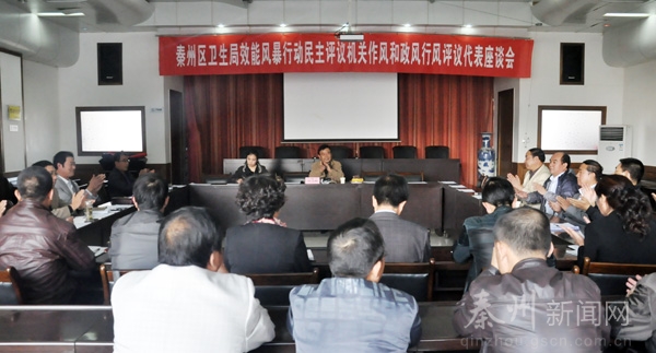 。▍^(qū)衛(wèi)生局 李華)9月26日下午,秦州區(qū)衛(wèi)生局召開效能風暴行動民主評機關作風和政風行風工作座談會,區(qū)第五代表組組長及成員,局機關全體干部職工、局屬單位、社區(qū)衛(wèi)生服務中心負責人、鄉(xiāng)鎮(zhèn)衛(wèi)生院院長、各層面代表和5名被聘請的行評監(jiān)督員共60余人參加了會議。