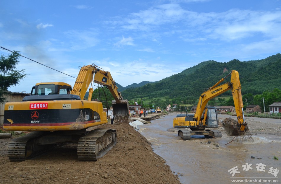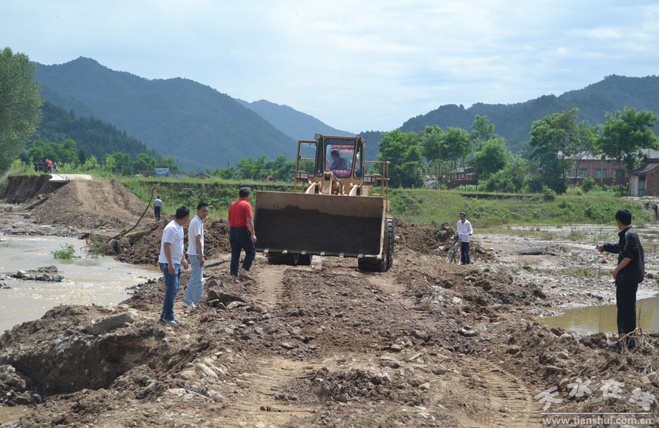 。ㄇ刂輩^(qū)外宣辦)娘娘壩花園村下轄7個自然村,村民居住分散,在此次暴雨中,道路損毀嚴重,村民出行及救災(zāi)物資運送通道被隔斷,情況十分危急。面對這種情況,秦州區(qū)交通部門從20日早上開始,組織35人,投入運輸車輛5輛,裝載機5臺,挖掘機2臺,連續(xù)奮戰(zhàn),積極投身主干線道路的搶修當(dāng)中,派專門的挖掘機械搶修從李子到花園所有自然村的道路。