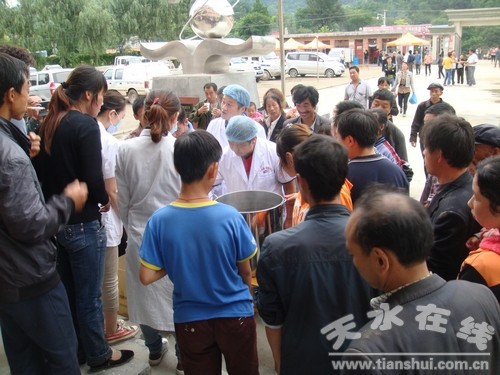 由于災(zāi)民居住相對集中,并且居住條件相對較差,并且近期雨水較多,飲食及環(huán)境衛(wèi)生條件均差,可能造成災(zāi)民安置點腸道傳染病的暴發(fā)流行,天水市疾病預(yù)防控制中心充分發(fā)揮中醫(yī)藥預(yù)防疾病的優(yōu)勢,積極按照甘肅省名中醫(yī)劉東漢教授的中藥方劑,熬制防治腹瀉病的中藥湯劑60公斤,為安置在興隆小學(xué)的600余名群眾進(jìn)行了預(yù)防性投服,有效的預(yù)防了腹瀉病的發(fā)生和流行。
