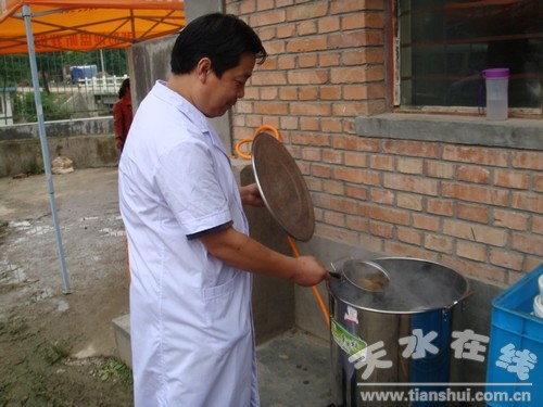 ·天水疾控中心在災(zāi)區(qū)安置點投服中藥預(yù)防傳染病(圖)