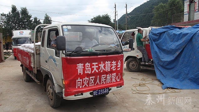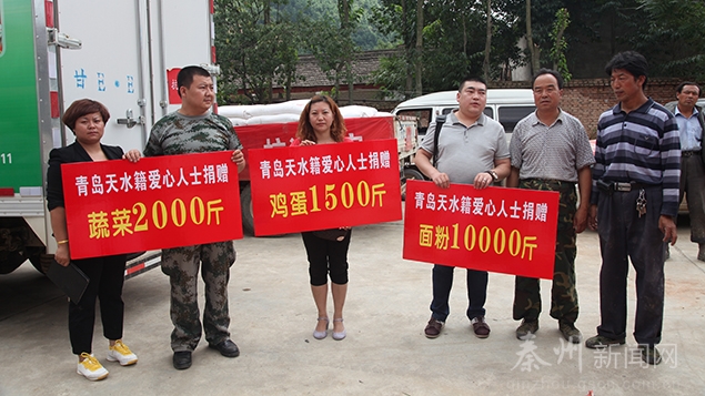 (秦州區(qū)外宣辦 劉可)鄉(xiāng)音難改,鄉(xiāng)情難斷。秦州娘娘壩發(fā)生特大暴洪泥石流災(zāi)害以來,遠(yuǎn)在青島的天水籍人士為了幫助受災(zāi)同胞度過難關(guān),積極行動(dòng)起來,為災(zāi)區(qū)捐款捐物。8月3日,由他們籌集的10000斤面粉,2000多斤雞蛋,2000多斤蔬菜運(yùn)抵娘娘壩鎮(zhèn)李子園物資臨時(shí)中轉(zhuǎn)站。