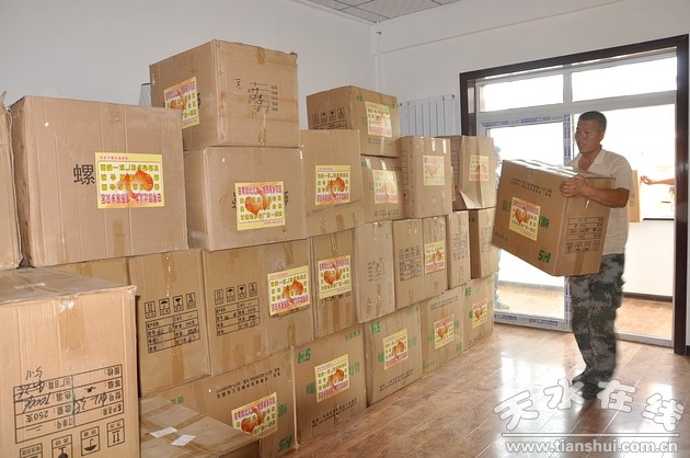 8月20日,在秦州區(qū)民政局救災(zāi)物資接收中心正在卸載遠(yuǎn)在廣東的西北兒女為災(zāi)區(qū)娘娘壩捐贈(zèng)的物資。