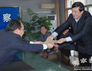 (秦州區(qū)外宣辦 劉可)1月29日,秦州區(qū)委副書記、區(qū)長何東,區(qū)委常委、紀(jì)委書記毛更生,副區(qū)長王曉彤及區(qū)委辦、政府辦、公安、安監(jiān)、交警、運管、消防、商務(wù)等部門相關(guān)同志和執(zhí)法人員,先后來到南湖車站、蘭天城市廣場、工農(nóng)路年貨市場、堅家河煙花爆竹銷售點和西十里高速公路出口等處,就節(jié)前全區(qū)道路交通、年貨市場、食品安全、煙花爆竹銷售等工作進(jìn)行了聯(lián)合檢查。