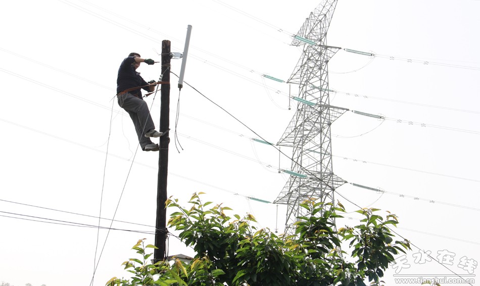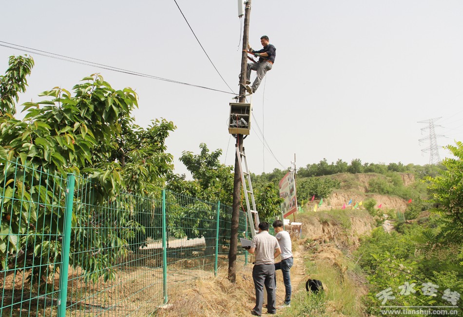 5月18日上午,甘肅電信的工作人員正在煙鋪萬畝櫻桃園架設(shè)WIFI基站。該基站由天水在線投資建設(shè),是天水在線“互聯(lián)網(wǎng)+煙鋪大櫻桃”行動項目之一。該基站的啟動運(yùn)行,將為參加秦州大櫻桃推介會的嘉賓們和來煙鋪櫻桃園采摘游的朋友們提供免費(fèi)的WIFI服務(wù)。