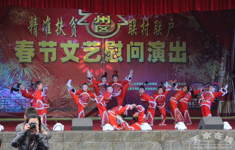 秦州區(qū)“精準(zhǔn)扶貧、聯(lián)村聯(lián)戶”春節(jié)文藝慰問演出活動,節(jié)目豐富多彩,主題健康向上,為廣大群眾送上了豐富的文化大餐和新年美好的祝福。整場演出不僅是一場互動共享的文化盛宴,也是一場心連心的情感深度融合,更是全面建成小康社會的有力鼓舞和精神動力。